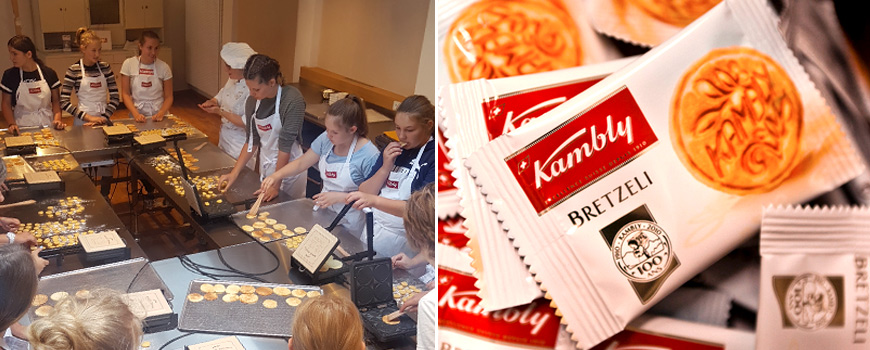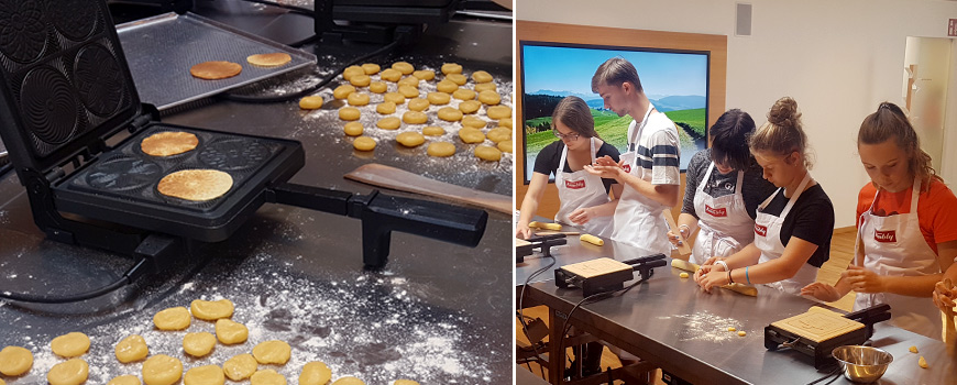 Zum wohlverdienten Jahresabschlussausflug der Catering AG ging es für die Schüler am Ende des Schuljahres nach Ravensburg zur Firma Kambly (Tekrum). Dort nahmen sie an einem ausergewöhnlichen Backworkshop teil: "Bretzeli backen und schokolatieren".