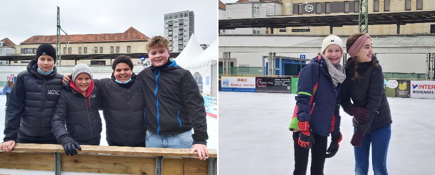 Eine Gruppe von Schülerinnen und Schülern machte sich in der letzten Novemberwoche gemeinsam mit ihren Sportlehrerinnen auf den Weg nach Friedrichshafen, um auf der Eisbahn am Romanshorner Platz schwungvoll ihre Runden zu drehen.