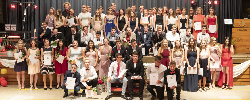 Am 11. Juli 2018 entließ die Realschule Ailingen in der Rotach-Halle 61 Absolventinnen und Absolventen mit dem Realschulabschluss. 17 Schülerinnen und Schüler erhielten einen Preis für besonders gute Leistungen, 22 Schülerinnen und Schüler erhielten ein Lob für eine gute Leistung.