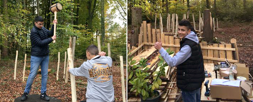 Technikschüler aus Klasse 9 bauen im Waldkindergarten in Lottenweiler Aussichtsplattformen, und Stege mit Kletter,- und Balancierelementen. Ermöglicht wird dies unter anderem durch die 1500€ Spende der IKEA-Stiftung. Deren Schwerpunkt ist die Förderung von Initiativen, die die Wohn- und Lebenssituation von Kindern und Jugendlichen verbessern helfen.